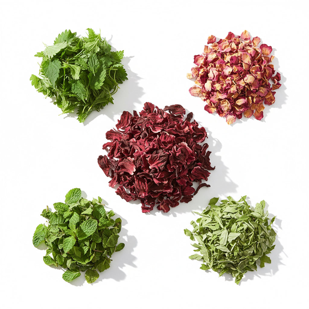 Hibiscus, Peppermint, Rose Petals, Lemon Verbena, Nettle Leaf